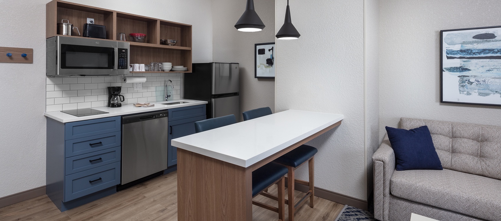We are one of a kind at Candlewood Suites. We are centrally located off I-44 and 3 miles from Fort Leonard Wood. Our superior suites are big and built for comfort. Every room has a fully equipped kitchen, which is perfect for our extended-stay guests.
